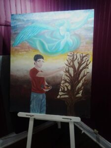Su principal obra es el mandala con el título “En lo profundo de mi ser”. Fue su trabajo final que no solo le hizo aprobar su tesis, sino que fue el cuadro seleccionado como uno de los mejores en el movimiento artístico “ecléttica argentina” donde participaron 618 artistas y solo fueron elegidos 12 de los mejores cuadros, entre ellos éste que fue escogido por el maestro Giuliano Otavianni. Dicha mención lo llevo a exponer en el museo de Spoleto (Italia) en septiembre de 2018. El resto de los cuadros presentados en esta muestra itinerante hacen alusión al descubrimiento interno de cada uno.
