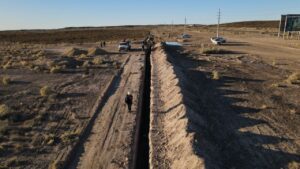 Finalizada la construcción civil de la Planta Reguladora de Presión de Gas y el ensamble y armado de la cañería principal, actualmente se avanza en la etapa de distribución interna, con la ejecución del tendido de 815m de un total de 1645m de cañería de acero de diámetro 4 pulgadas a completar, para el abastecimiento del futuro sector industrial.