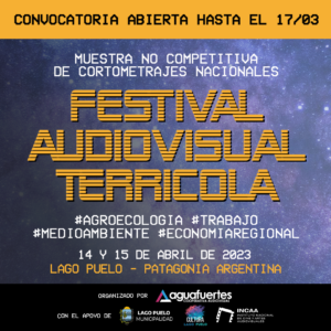 De entrada libre y gratuita, la muestra está organizada por Aguafuertes Cooperativa Audiovisual, una cooperativa formada por estudiantes y graduados/as de la Lic. en Diseño Artístico Audiovisual de la Universidad Nacional de Río Negro. Además, cuenta con el apoyo del INCAA – Instituto Nacional de Cine y Artes Audiovisuales, y de la Secretaría de Cultura y Educación de la Municipalidad de Lago Puelo.