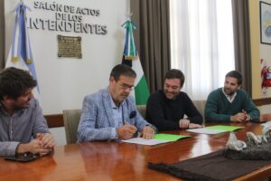 El Intendente Municipal Adrián Casadei junto al Interventor del IPPV, Mariano Lavin, firmaron en horas del mediodía un convenio de colaboración recíproca para el mejoramiento del desempeño territorial, en el marco del programa “IPPV en tu barrio”.