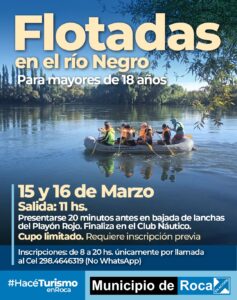 El Municipio de Roca, a través de la Dirección de Turismo, ofrecerá salidas en balsa durante marzo, para disfrutar la experiencia de navegar el río mediante un guiado interpretativo y la contemplación del paisaje natural.