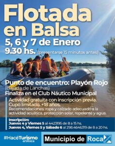 Las salidas están programadas para los días viernes 05, sábado 06 y domingo 07 de enero. El horario de salida es 9.30 hs. desde bajada de lanchas. Requiere de inscripción previa llamando jueves y viernes de 8 a 15hs al 298 4423195 o jueves, viernes y sábado de 8 a 20 hs al celular 0298-154646319 (solamente llamadas – NO WhatsApp)