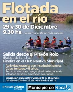 El Municipio inicia las flotadas en balsa sobre el rio Negro, la propuesta que se desarrollará durante la temporada de verano en fines de semana y que busca que las y los participantes tengan la oportunidad de vivenciar la experiencia de navegar el río con guiado interpretativo y contemplación del paisaje natural.