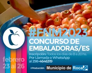 En el Marco de una nueva edición de la Fiesta Nacional de la Manzana, continúan las inscripciones al tradicional Concurso de Embaladores/as, a realizarse los días 24, 25 y 26 de Febrero del 2023.