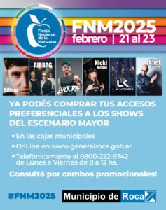 En las Cajas Municipales de a partir del lunes 03/02 en el horario de 8 a 12 hs, de lunes a viernes podrán adquirirse los accesos para las tres noches manzaneras, pudiendo los interesados hacerlo también en forma online a través de la página web del Municipio de Roca https://www.generalroca.gob.ar:901/manzana2025/ ; o telefónicamente comunicándose al 0800-222-9742 de lunes a viernes de 8 a 12 hs. Se recuerda que en todos los casos, el pago de los accesos se puede realizar en efectivo, o con tarjetas de débito o crédito y las pulseras adquiridas online o por teléfono se retirarán en puntos habilitados para tal fin dentro del Predio, durante los días de la Fiesta.