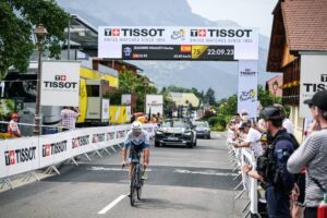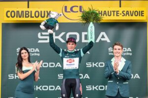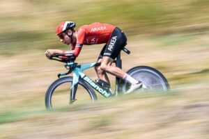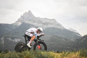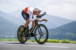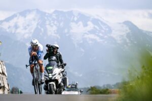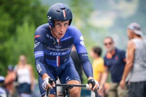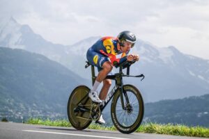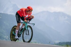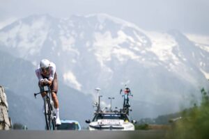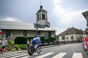 156 corredores tomaron la salida en la decimosexta etapa del Tour de Francia 2023, una contrarreloj individual de 22,4 kilómetros entre Passy y Combloux, con dos cotas en su recorrido: la Côte de Cascade de Coeur (no puntuable, km 4,1) y la Côte de Domancy (2ª, km 18,9). No fue de la partida Matteo Jorgenson (Movistar Team), lesionado. Abrió el concurso a las 13:05 el danés Michael Morkov (Soudal-Quick Step), primer mejor tiempo en meta con 39’46”. Sucesivamente registrarían nuevas mejores marcas Axel Zingle (Cofidis), Gianni Moscon (Astana Qazaqstan), Dries Devenyns (Soudal-Quick Step), Nikias Arndt (Bahrain Victorious) y Mads Pedersen (Lidl-Trek), hasta que el campeón nacional francés Rémi Cavagna (Soudal-Quick Step) marcó un crono de 35’42” que le sirvió para campear en lo más alto de la tabla durante más de dos horas. En este lapso de tiempo, sólo Stefan Küng (Groupama-FDJ) logró superarle en el intermedio de Passy Chef-Lieu (km 7,1), para posteriormente ir a menos y acabar con casi un minuto de retraso respecto al ‘TGV de Clermont-Ferrand’.