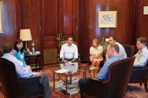 Más tarde, el senador acompañó a productores avícolas rionegrinos a la sede del BNA, donde fueron recibidos por la titular del banco, Silvina Batakis; el director del BNA, Martin Pollera; y la gerenta de Investigaciones Económicas, Karina Angeletti; para discutir y coordinar instrumentos de asistencia financiera y crediticia para PyMEs y MIPYmEs afectadas.