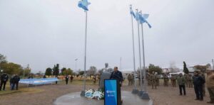 Neuquén. – Junto al intendente Mariano Gaido, el gobernador Omar Gutiérrez encabezó esta mañana en el Parque Belgrano de la ciudad de Neuquén los actos por el Día de la Bandera, donde trazó una paralelismo entre la vida política y los ideales de su creador, Manuel Belgrano, con la necesidad de “construir acuerdos y consensos para lograr la soberanía energética del país”.