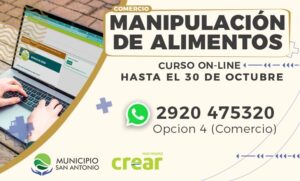 La Subsecretaría de Control Comercial y la Agencia CREAR SAO comunica que se encuentra disponible en su plataforma virtual https://crear.educativa.org la capacitación “Manipulación Higiénica de Alimentos”.