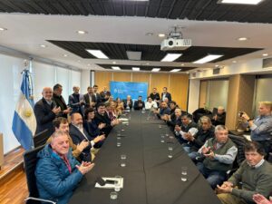 Del encuentro convocado por el ministerio de Economía, que conduce Sergio Massa, participaron la ministro de Trabajo, Kelly Olmos, empresarios de las Cámaras de Servicios Especiales y de Operadoras y los secretarios Generales de los sindicatos de base y jerárquicos de todas las cuencas del país.
