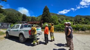 Por otro lado, en la zona de Cascada los Alerces un equipo del COE permanece en el lugar junto a las poblaciones continuando con las tareas preventivas planificadas y monitoreando el comportamiento del fuego.