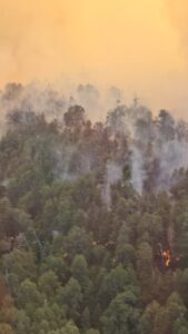 La intendencia del Parque Nacional Nahuel Huapi informa que continúan los trabajos sobre el incendio en la zona sur del Parque Nacional Nahuel Huapi, ubicado en Reserva Estricta, que se inició en cercanías del Lago Los Manzanos.