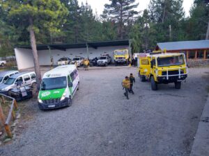 Se espera en la jornada de hoy destinar los siguientes recursos: en relación a los medios aéreos: dos aviones hidrantes y un helicóptero del Servicio Nacional del Manejo Fuego, 23 combatientes con 3 móviles de apoyo en el lugar y toda la Central abocada a tareas relacionadas, del SPLIF El Bolsón; 10 combatientes con herramientas manuales y 2 técnicos, del SPLIF Bariloche; 30 combatientes con herramientas manuales: 20 de Brigada Nacional Sur, 5 de PNLP y 5 de PNNH. También colabora con el pronóstico meteorológico especial para incendios, del Servicio Nacional de Manejo del Fuego;