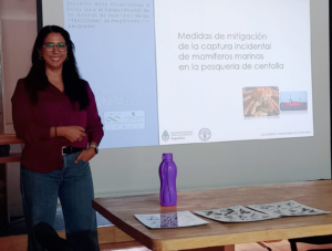 En la misma línea, durante la jornada del jueves la Lic. Cecilia Mauna expuso las características de la flota que opera en centolla en aguas nacionales y presentó las medidas de mitigación en dicha pesquería.
