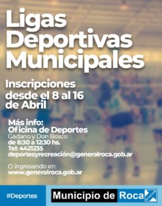 General Roca – Desde el 8 al 16 de abril se encuentra abierta la inscripción a las Ligas Deportivas Municipales Femeninas y Masculinas de Fútbol, Básquet, Handball, Voley y Hockey