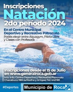 General Roca – A partir del lunes 15 de julio, el Municipio de Roca abre la inscripción para que vecinos y vecinas de la ciudad participen en el segundo periodo de actividades de Natación a dictarse en el Centro Deportivo y Recreativo de Patronato.
