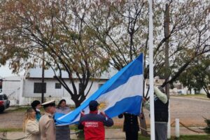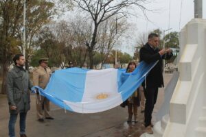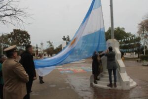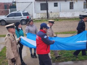 En esta mañana lluviosa del día de nuestra bandera, acompañaron demás autoridades municipales, fuerzas de seguridad y vecinos.
