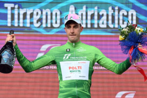 Maglia Verde , líder de la clasificación del Gran Premio della Montagna, patrocinada por Trenitalia – Davide Bais (Team Polti Kometa)