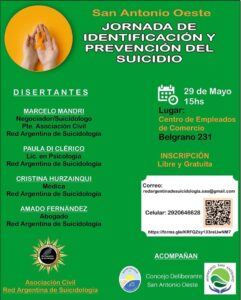 Este 29 de mayo se realizará la Jornada de Identificación y Prevención del Suicidio