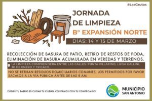 Los días sábado 14 y domingo 15 de marzo se realizarán jornadas de limpieza integral en el barrio Expansión Norte de Las Grutas.