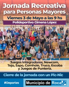 El Municipio de Roca, a través de la Dirección de Deportes y la Coordinación de Programas y Acciones para Personas Mayores, invita a la primera jornada del 2024 de Juegos y Recreación para Personas Mayores, que se realizará el próximo viernes 3 de mayo a las 9 hs. en el Polideportivo Gimena López.