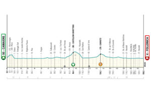 Esta etapa es ondulada y ondulada, especialmente en la segunda parte. Comenzando en Camaiore y atravesando Montemagno, la ruta llega a Pisa y al distrito de Livorno por carreteras llanas, luego sube hasta Castellina Marittima y continúa hacia el sur, pasando por Riparbella y Canneto. Después de un segmento largo y mayoritariamente cuesta abajo, el recorrido de la etapa entra en el último circuito de 20 km, que se recorrerá una vez.