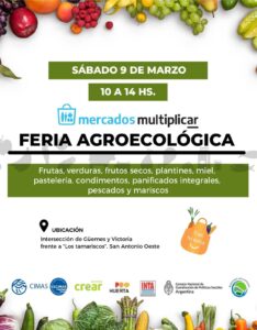 Este sábado 9 de marzo en el predio “El Galpón”, ubicado entre las calles Victoria y Güemes, se realizará la habitual Feria Agroecológica MultiplicAR con la venta de verduras, frutas, frutos secos, plantines, huevos, pescados, miel, panificados integrales, dulces, pescados, mariscos y más, a lo que se sumará la demostración “Cocina de Estación”, de la mano de Laura y Gualberto provenientes del Instituto de Desarrollo del Valle Inferior -IDEVI-.