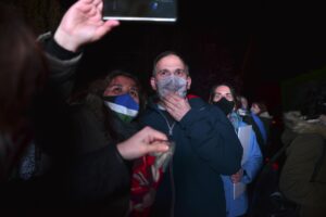 Agustín Domingo alrededor de las 20, dos horas después del cierre de las escuelas, comenzó a festejar en el local del partido en Bariloche, junto al intendente Gustavo Gennuso, el ministro Carlos Valeri, legisladores y militantes. La gobernadora Arabela Carreras no fue de la partida porque esta tarde decidió viajar a Viedma.