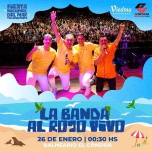 La Municipalidad de Viedma informó que la reconocida Banda al Rojo Vivo será la banda sorpresa que cerrará la 51ª edición de la Fiesta Nacional del Mar y el Acampante.