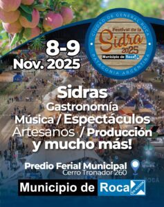 Toda la información referente al Festival de la Sidra, se podrá encontrar en los próximos días en el sitio web municipal www.generalroca.gob.ar.
