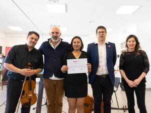 Con la presencia del vicerrector Diego Aguiar, la subsecretaria de Extensión, Mabel Chrestia, el director de la diplomatura Facundo Agudin, la directora de la Escuela de Artes Carola Dreidemie y la coordinadora de la diplomatura, Débora Alegret, junto a docentes, estudiantes, familiares y amigos, se realizó la entrega de los certificados a aquellos que concluyeron la primera cohorte de la Diplomatura en Música, una propuesta que se realizó de manera híbrida desde septiembre de 2022 hasta noviembre de 2023.