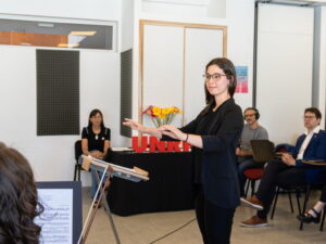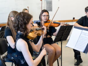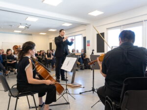 “En el concierto final participaron directores y directoras que vienen trabajando hace casi ya dos años, y también algunos de los y las instrumentistas que estuvieron participando de la diplomatura”, explicó Facundo Agudin que detalló que “se presentaron los trabajos de 5 directores de orquesta, de una violinista y un instrumentista de corno. Para el concierto se trabajó con un cuarteto de cuerdas más una pianista”.