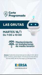 La Empresa EDERSA S.A informa que realizará un corte programado en Las Grutas por mantenimiento en instalaciones de media tensión.