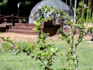 Además del jardín, el proyecto incluye una plantación experimental para la producción de berries nativos, en específico de la Uñi, también llamada Murta. Este berrie, con gran potencial comercial, puede utilizarse como producto gastronómico, cosmético, farmacológico (por sus propiedades cicatrizantes, analgésicas y antioxidantes) o como botánicos para bebidas alcohólicas como la cerveza o el gin. Para ello Sara convocó al Instituto de Investigaciones en Recursos Naturales, Agroecología y Desarrollo Rural (IRNAD, UNRN-CONICET).