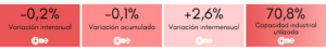 Las empresas operaron con 70,1% de su capacidad instalada en el cuarto mes del año, mostrando un aumento de 0,1 puntos porcentuales frente a marzo.