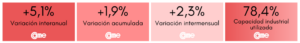 La producción experimentó un crecimiento de 5,1% anual a precios constantes, acumulando un aumento del 1,9% en los primeros nueve meses del año. En términos mensuales, la actividad mejoró 2,3%. Durante el mes, las industrias operaron al 78,4% de su capacidad instalada, un punto porcentual por encima de agosto (77,4%), y 55,8% de ellas tuvieron problemas para reponer stocks.