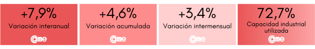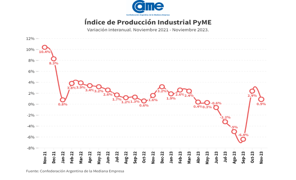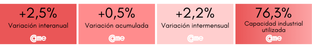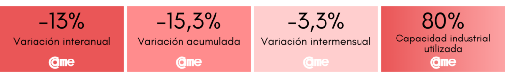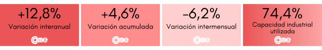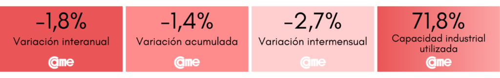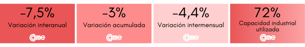 Estos resultados surgen del Índice de Producción Industrial Pyme (IPIP) que elabora la CAME, con una muestra que alcanzó a 413 industrias pyme a nivel federal.