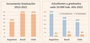 “Chile y Brasil tuvieron mayor graduación anual y mayor crecimiento en cantidad de graduados que Argentina en los últimos años.”