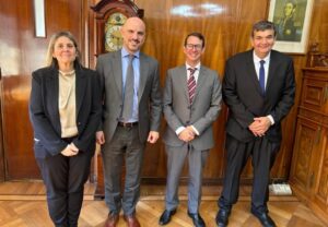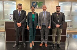 En la continuidad de las reuniones en Buenos Aires, los funcionarios provinciales asistieron al Banco de Desarrollo de América Latina (CAF) donde se interiorizaron sobre los proyectos de la provincia. Estuvieron reunidos con la representante de CAF en Argentina, Susana Edjang, y el Ejecutivo Principal, Sebastián Putzoli.