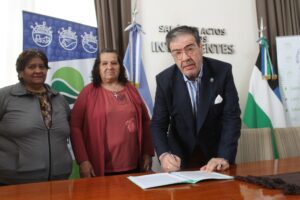 El Intendente Municipal Adrián Casadei y la Directora de Cultura Miryam Rogga, firmaron junto a la representante de la Asociación “Artesanas de la Ría”, Estela Pessacg, el comodato que otorga la concesión por cuatro (4) meses del Salón de Exposiciones a dicha Asociación, ubicado en la Galería Antares de Las Grutas.