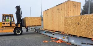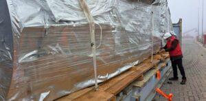 “Son 8 contenedores: 6 contenedores en sí y 2 flat ruck que son los contenedores abiertos”, detalló Pereyra. “En el mismo depósito donde están los contenedores está la aduana –informó-, así que ellos ya hicieron el trámite: autorizan a los camiones a salir y una vez que los autorizan el convoy de 8 camiones va para Mendoza, hará aduana en Mendoza y saldrá en los mismos camiones para Nahueve”.