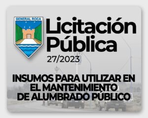 La Municipalidad de General Roca, llama a Licitación Pública Nº 27/2023 correspondiente a la: “Compra de insumos para utilizar en el servicio de mantenimiento de alumbrado público en distintos puntos de la ciudad”.