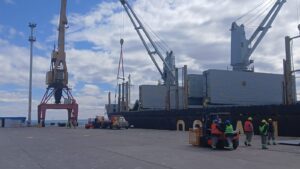 El acero, adquirido en Corea y embarcado en China, será descargado durante cinco días, con la participación de 60 trabajadores por turno, en una maniobra logística de gran magnitud para la Provincia.
