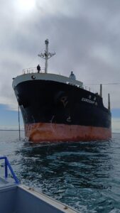 El fin de semana arribó el buque Coreship OL con parte de las chapas que estarán destinadas a la construcción de los seis tanques de almacenamiento del oleoducto Vaca Muerta Oil Sur en Punta Colorada. La descarga comenzó este lunes en San Antonio Este y demandará cinco días.