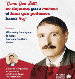 Por su parte, el domingo las acciones comenzarán a las 8.30 con un momento de oración en el patio del antiguo Colegio San Francisco, al lado de la Catedral de Viedma, y seguirán con una peregrinación junto a la urna que contiene las reliquias de Don Zatti hacia la Parroquia Don Bosco, donde a las 11 tendrá lugar una Solemne Eucaristía frente al templo parroquial para despedir a los peregrinos.