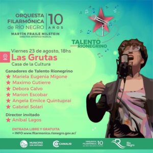 Cabe mencionar que este evento tiene como objetivo revalorizar y visibilizar el talento artístico de rionegrino/as, y al mismo tiempo tener la oportunidad de compartir escenario con la Orquesta Filarmónica de Río Negro.