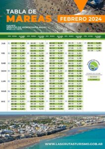 – Lunes 12/02 – hora 01:27 – altura 9,23 m. / hora 13:56 – altura 9,16 m.