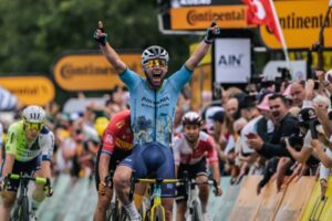 Una de las mil bellezas del ciclismo es su calidad de espectáculo itinerante: cualquier lugar puede escenificar una competición, cualquier metro de asfalto es bueno para convertirse en inolvidable. El pequeño municipio de Saint-Vulbas, de poco más de 1000 habitantes y que se estrenaba en el Tour de Francia con esta etapa, entró por la puerta grande en la historia de la Grande Boucle gracias a la victoria de Mark Cavendish (Astana Qazaqstan) para anotar su 35º triunfo parcial en la ronda gala y convertirse con ello en el ciclista más ganador de siempre en esta carrera, superando definitivamente a Eddy Merckx (con 34 victorias). El británico se impuso en un sprint masivo a Jasper Philipsen (Alpecin-Deceuninck) y Alexander Kristoff (Uno-X). No hubo novedades en la clasificación general, con Tadej Pogacar (UAE Team Emirates) conservando el maillot amarillo. El Tour de Francia continuará este jueves con una nueva etapa llana de 163,5 kilómetros entre Mâcon y Dijon.