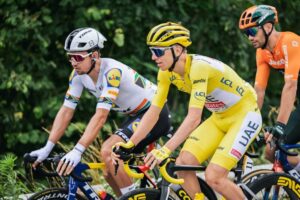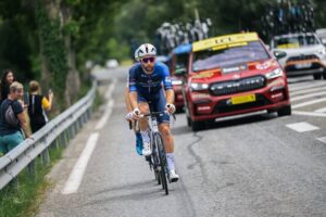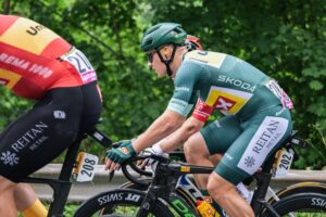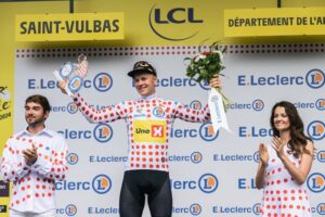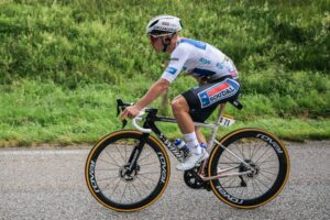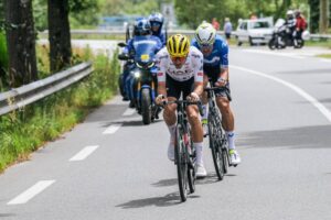 Russo encabezaría el paso por la Côte du Cheval Blanc (4ª, km 104,6), donde los fugados conservaban 2’20” de ventaja sobre el grupo principal desafiando al viento de cara y las precipitaciones intermitentes que marcaron la jornada. El impulso de la disputa del sprint intermedio de Aoste (SI, km 123,2), liderado por Russo en la escapada y Pedersen en el pelotón, provocó que la ventaja de la fuga bajara hasta sólo 1’00” a 50 kilómetros de meta. Fue a 36 del final, en el km 141 de recorrido, que el ‘paquete’ atraparía definitivamente a los dos fugados. Esto permitió a Jonas Abrahamsen (Uno-X) pasar en primera posición por la Côte de Lhuis (4ª, km 142,8) para blindar su liderato en la clasificación de la Montaña.