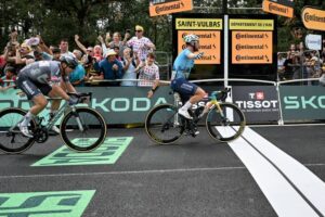 La aproximación a Saint-Vulbas discurrió sin mayor novedad que las caídas de Alexander Kristoff (Uno-X) y Christophe Laporte (Visma-Lease a Bike), ambas sin consecuencias, tal y como tampoco las tuvo otra sufrida por Pello Bilbao (Bahrain Victorious) en torno al kilómetro 119 de etapa. Lotto-dstny llevó la voz cantante en la preparación de una llegada masiva que se enmarañó en sus últimos compases, con caída incluida para Pedersen en la recta final. Del caos emergió ganador Mark Cavendish (Astana Qazaqstan) por delante de Jasper Philipsen (Alpecin-Deceuninck) y Alexander Kristoff (Uno-X). Un noveno puesto en meta sirvió a Biniam Girmay (Intermarché-Wanty) para arrebatar el maillot verde a Abrahamsen.